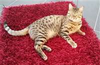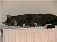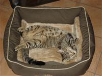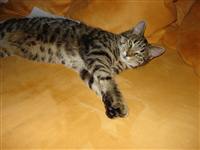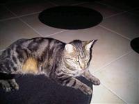 Bauch, das restliche Fell ist schwarz-grau getigert.